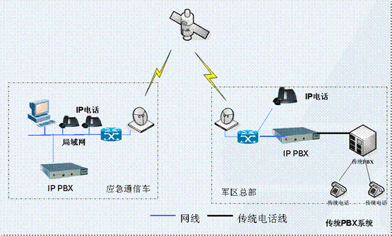 某军区为了应付突发事情,部署了应急通信车。应急通信车上部署有卫星收发设备,通过卫星通信将应急通信车与军区总部相连接。实现数据、语音和图像的实时传输。