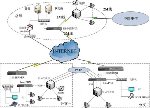 6、 实现全系统语音通话“内部走VOIP、 市话、长话走PSTN”。
