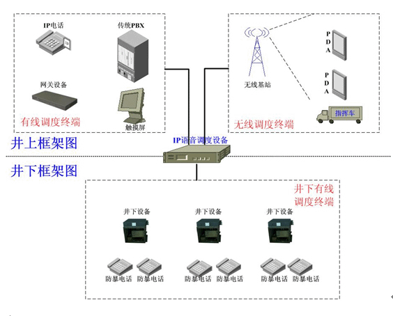 现状,用户要求提供能够覆盖井上对井下所有工作站的指挥调度系统,提供尽量多的联络沟通方式