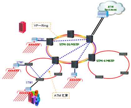 MSAP对于ATM的处理能力将极大的降低DSLAM汇聚的成本,而且网络层次清晰,易于维护管理,同时保证网络具有强大的扩容能力。