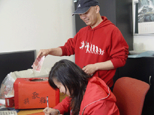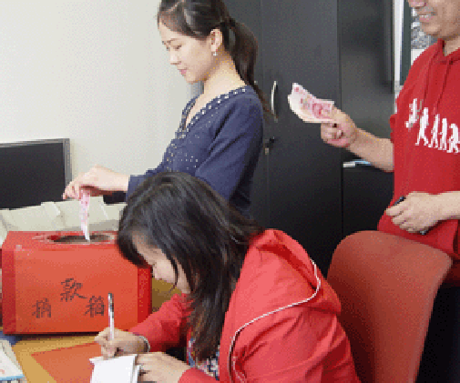 在人力资源部的号召下,截至今日,公司共有99名员工为灾区人民捐款,捐款额共计人民币10,557.5元(壹万零伍佰伍拾柒元伍角整)。在财务部的监督下,由人力资源部的工作人员将该项捐款捐赠到了北京市慈善协会。“积水成渊,积善成德”,我们代表灾区人民对每位献爱心的同事表示深深地感谢。