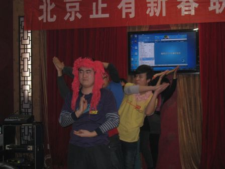 由李玉红带领的质检部给大家带来的巅狂舞蹈《正有版江南Style》,欢快、俏皮的音乐还未响起,帅哥靓妹们还未开演,那一身行头和阵势就已让全场掌声雷动,人气骤升:清一色的墨镜,清一色的西部牛仔帽,男的耍酷,像马帮老大;女的扮靓,像龙门客栈女掌柜。总之,音乐一起,舞步一迈,大家的口哨声、叫好声,就响成一片,一浪高过一浪。许多人都停下了手中的筷子,忘记了推杯换盏,从座位上站了起来,合着节奏,跟着台上的帅哥靓妹们HIGH起来。