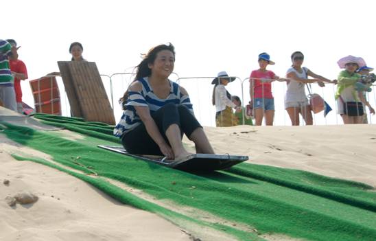 刚一下车,大家便都迫不及待地去玩滑沙滑草项目。当真正看到陡峭的沙丘上一条条铺设的轨道时,还是不免有些心惊,可当坐上滑板冲下的那一瞬间,恐惧也便被抛到了九霄云外,剩下的只是速度所带来的刺激感。