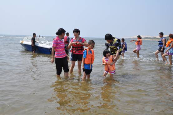 惊险过后,正有一行人沿着沙丘一路欣赏大漠风光、戈壁绿洲景象,在海边吹海风、拾贝壳、捉螃蟹,尽情感受这个大漠与大海的邂逅,欣赏这颗镶嵌在渤海湾的蓝色宝石。一路走来,也让大家体会到了,只有不畏艰险,勇于拼搏才能享受成功带给我们的喜悦和美好。