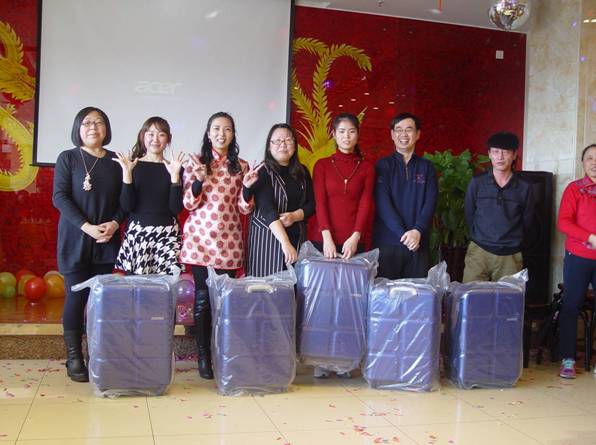 同往年一样,本次年会在精彩的节目间还穿插了轻松、益智的小游戏,给大家更多的参与机会:“你来比划我来猜”、“抢凳子”、“几碗胡辣汤”等等,让大家边吃边玩,兴趣斐然。还有大家期待的抽奖环节,也是奖品丰富,获奖面广,其中四等奖30名,三等奖15名,二等奖10名,一等奖1名,奖品分别为:室内空气加湿器30台,牧马人户外旅行帐篷15顶,豪华旅行箱10个,华为荣耀7I手机1部。另外,今年特别设立的阳光普照奖还为没有抓到大奖的员工们分别准备了高档指甲修剪器组合装1套,切切实实让正有公司的人文关怀送到每一个员工手中。