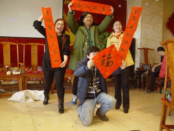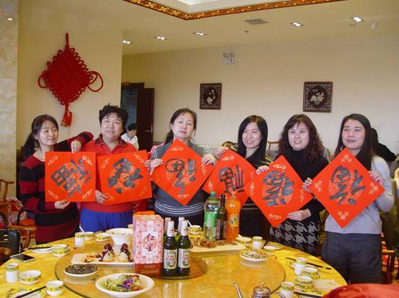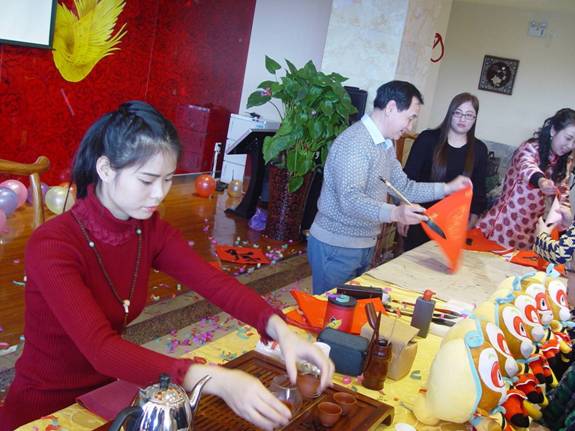 伴随着古筝音乐的悠远清扬,正有公司刘雅钧、程秀秀、曹金友为大家倾情奉献的茶道《禅茶一味》呈现在大家面前。以茶为媒的生活礼仪,以茶养性的生活方式,在沏茶、赏茶、饮茶的优雅里,正有员工们享受了源远流长的中国茶文化,而公司书法大师曹金友的现场泼墨挥毫,再配上红色镶金的纸张,映衬出了正有新的一年红红火火的新年新气象,更为大家带来了近距离欣赏中国书法艺术的机会:行草隶篆,各种笔体的新年贺岁对联与祝福,在优雅的茶道乐曲中,传递到正有员工手中。