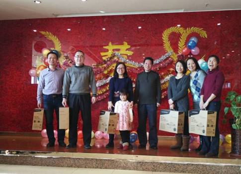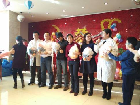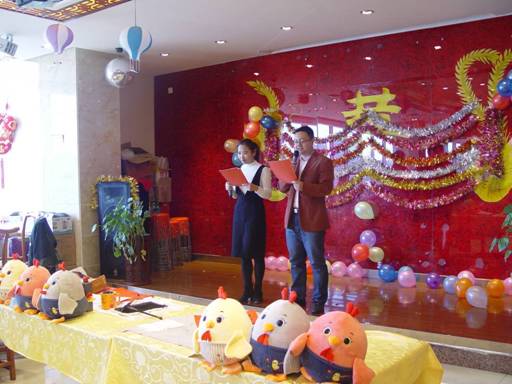 同往年一样,本次年会在精彩的节目中间还穿插了轻松、益智的小游戏,给不表演节目的同仁更多的参与机会:“踢毽子”、“蒙眼吃香蕉”、“纸上猜丁壳”、“抢凳子”等等,都是大家喜爱的喜闻乐见的小游戏,大家边吃边玩,热情参与。还有一年一度屏心静气、翘首期待的抽奖环节,更是比以往各个年度都来得猛烈些,基本上是人手一份奖品,这些都是大家喜欢的实实在在用得上的好奖品。