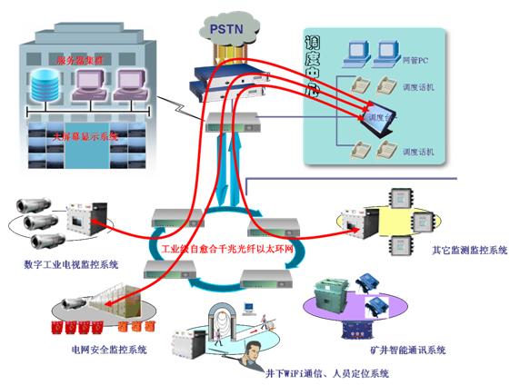 目前,北京正有公司根据用户需求,以煤矿“数字化矿井”整体建设构架为指导原则,完整意义上的实现煤矿安全生产的井上井下集有线和无线通讯于一体,日常生产指挥调度和应急救援通讯于一体,用户信息状态显示和位置信息显示于一体,矿井综合自动化测控系统和智能通讯系统联动报警于一体的综合解决方案。